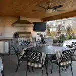 Ask yourself, what will I be doing with my outdoor kitchen? Is this just a covered grill, or is it a chef’s kitchen with seating for two dozen? Maybe 8×8 is sufficient, maybe 30×14 is on the tight side. The only way to know before building is to have a scaled concept layout done by a designer like DesignYourReno.com.